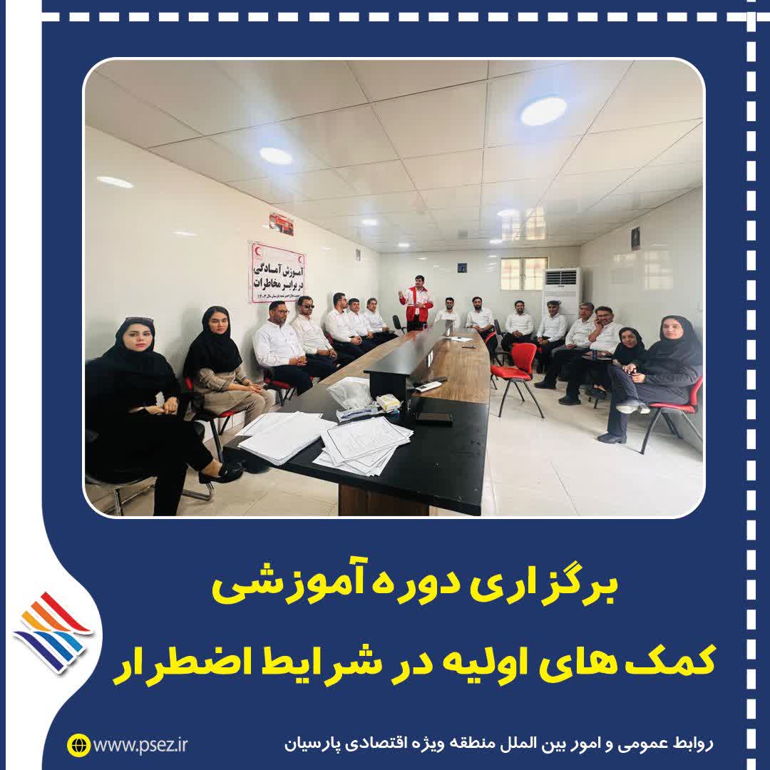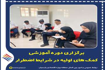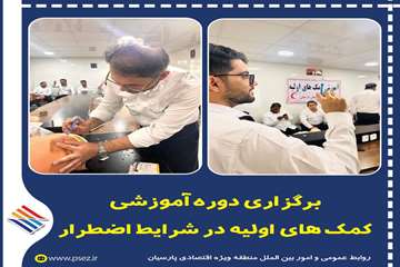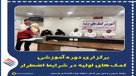 به گزارش روابط عمومی منطقه ویژه اقتصادی پارسیان؛ دوره آموزشی کمک های اولیه در شرایط اضطرار توسط هلال احمر و با هدف افزایش سطح آگاهی علمی و توانایی کارکنان در منطقه ویژه اقتصادی پارسیان برگزار گردید.