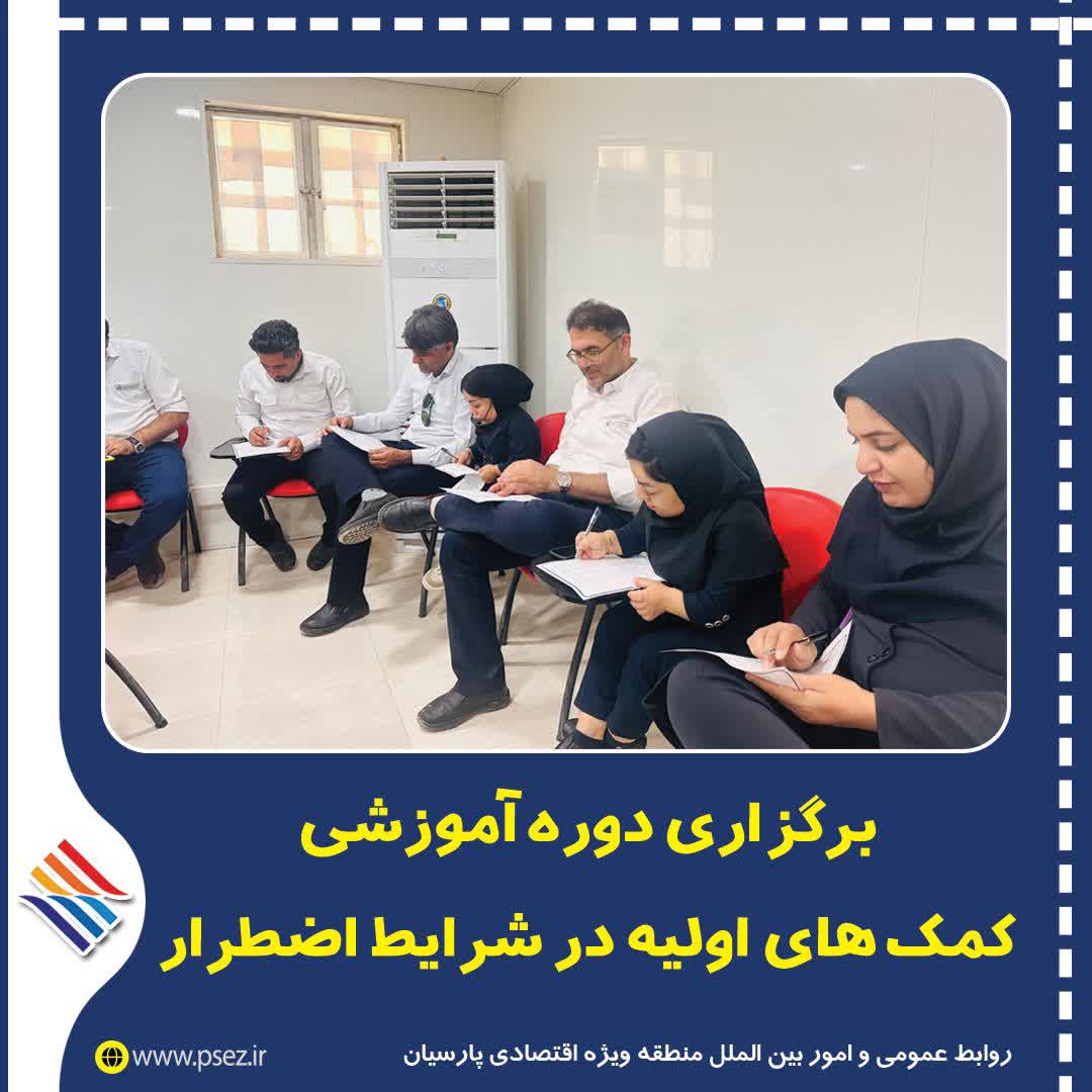 دوره آموزشی کمک های اولیه در شرایط اضطراری با سرفصل های کمک های اولیه، مخاطرات و تزریقات عضلانی در منطقه ویژه پارسیان برگزار شد.