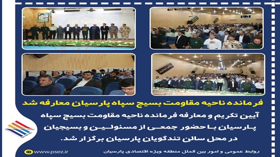 در این مراسم از زحمات سرهنگ پاسدار زارع خفری تجلیل و سرهنگ پاسدار حسین زاده به عنوان فرمانده جدید ناحیه مقاومت بسیج پارسیان معرفی شد.