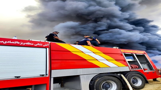 حضور فعال منطقه ویژه اقتصادی پارسیان در عملیات گسترده اطفای حریق در پارکینگ لنجهای جوادالائمه پارسیان