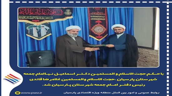 شرکت توسعه صنایع انرژی بر پارسیان جنوب | حجت الاسلام والمسلمین غلامرضا قائدی رئیس دفتر امام جمعه شهرستان پارسیان شد